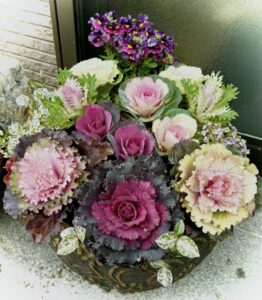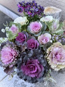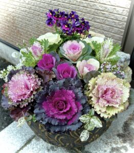 フリフリ丸葉とギザギザ切葉のミックス葉牡丹