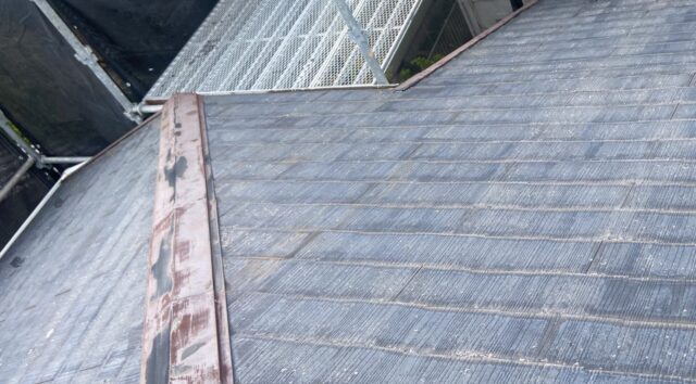 屋根瓦は、板金が錆び屋根材も塗膜剝離とクラックが発生していましたので屋根瓦葺き替え工事